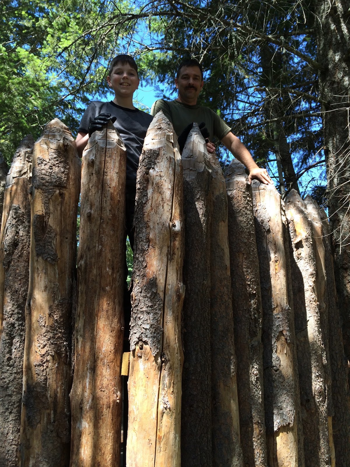 This was a labor-intensive project. Shaping the logs and transporting them to our building site was tough. Standing them in place required two adults or one adult and two strong kids. Building the deck was not terribly difficult, and was certainly the funnest part of the project. But, look at those smiles!